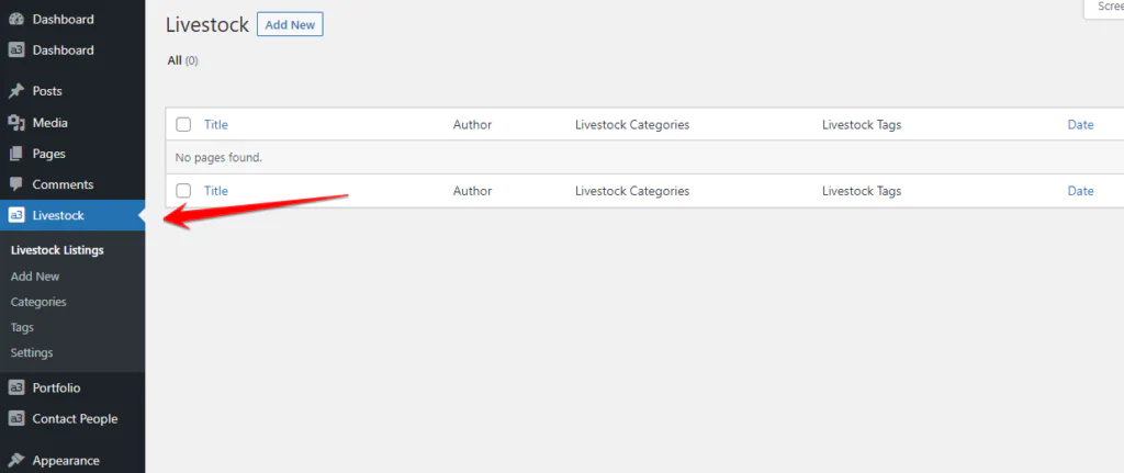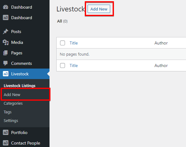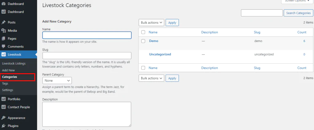 Livestock categories are a custom WordPress Taxonomy. This means that creating Categories works exactly the same as Post Categories.