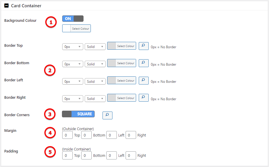 2. Borders – Set borders to the container box. Set the depth, shape and colour.