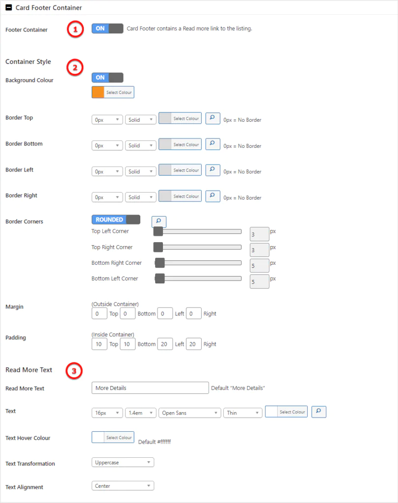 1. Footer Container – Card Footer contains a Read more link to the listing.