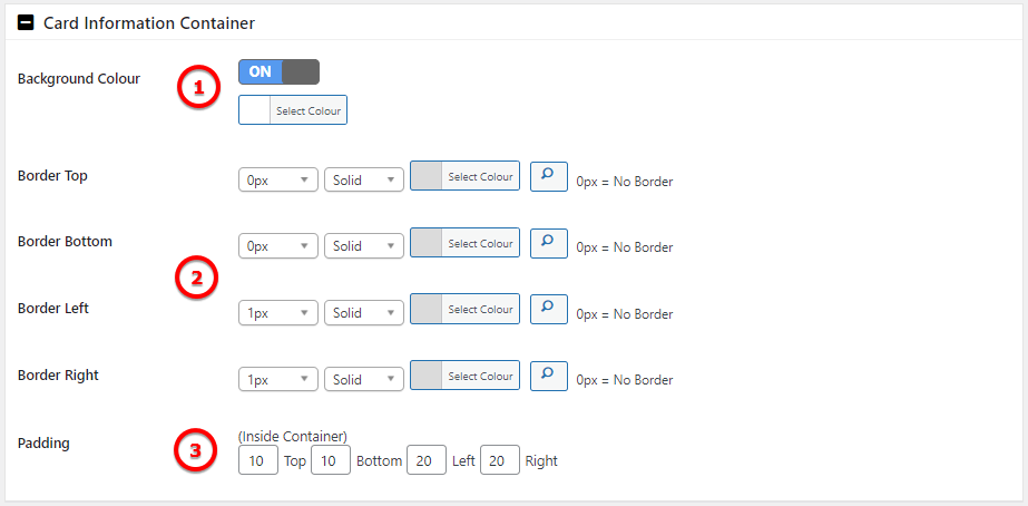 5. Padding – Padding or space between the listing container border and the Content. (Inside Container)