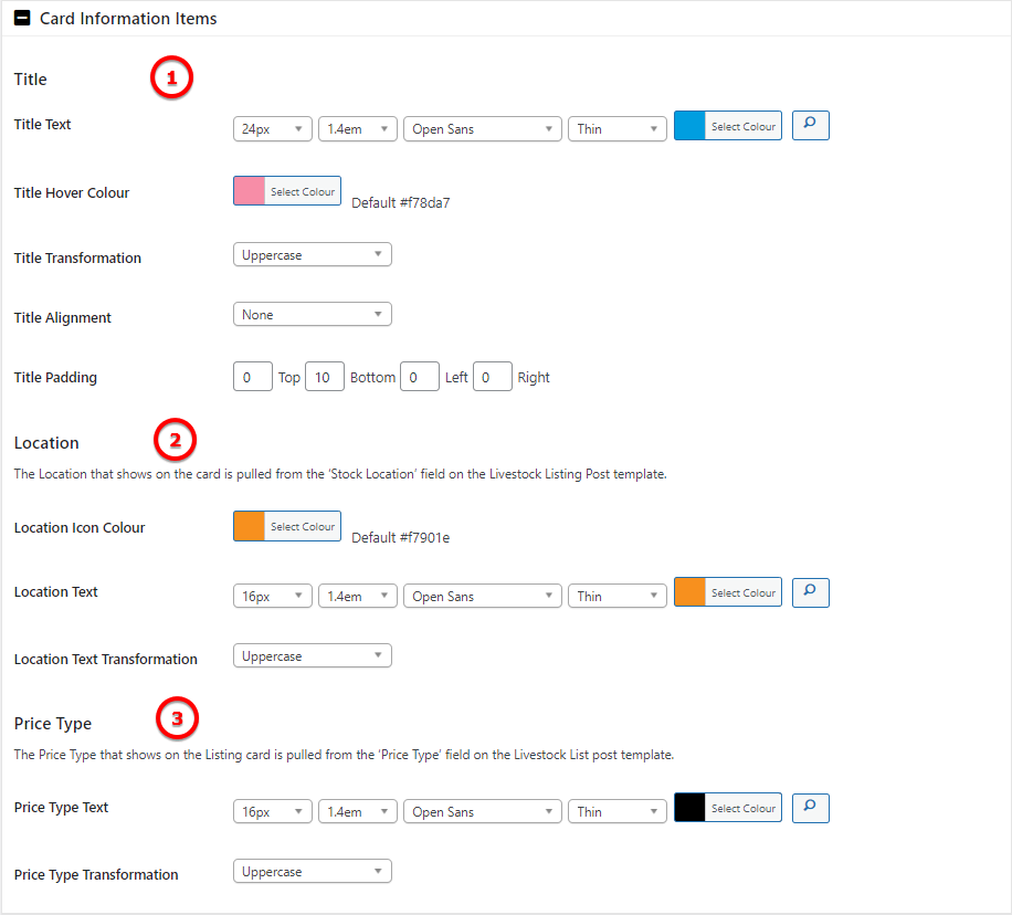 3. Price Type – The Price Type that shows on the Listing card is pulled from the ‘Price Type’ field on the Livestock List post template.