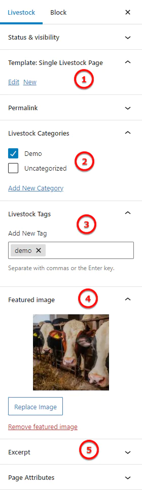 4. Feature Image – Add a image for the livestock post. It will be auto used for the livestock cards to.