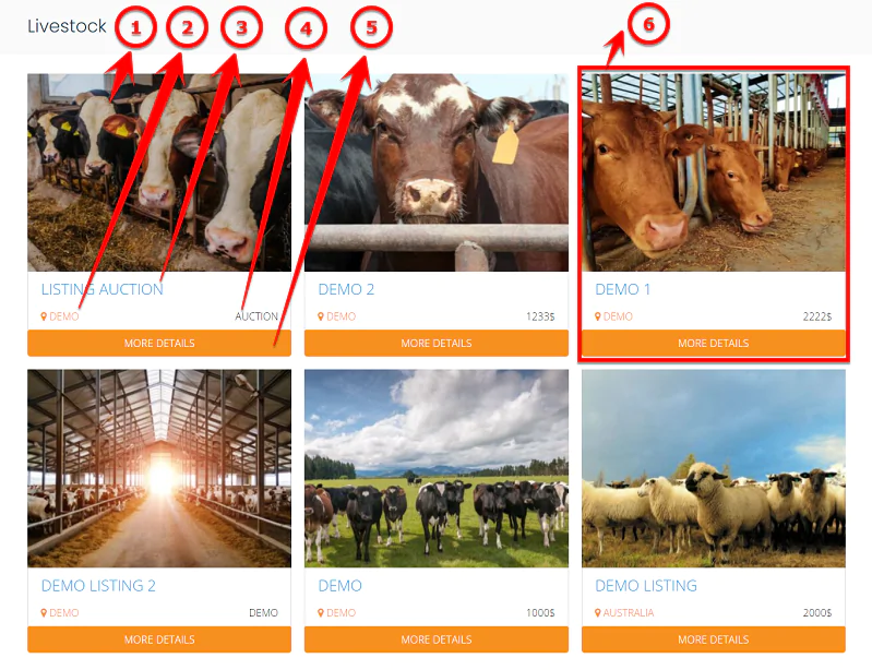 The Listing Card style setting below are only applied to the Livestock Listing Cards that show on the Livestock page (all Listings) and on Livestock Category or Tags pages.